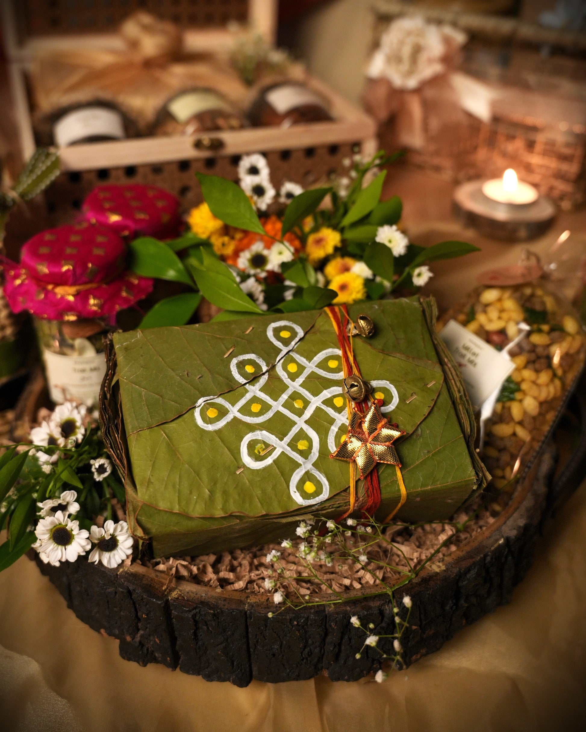Enjoy a heartwarming blend of wholesome trail mix, crunchy nuts, and nourishing millet, thoughtfully packed in a traditional leaf box. This snack brings simple goodness and happiness together, perfect for sharing moments of health and warmth.