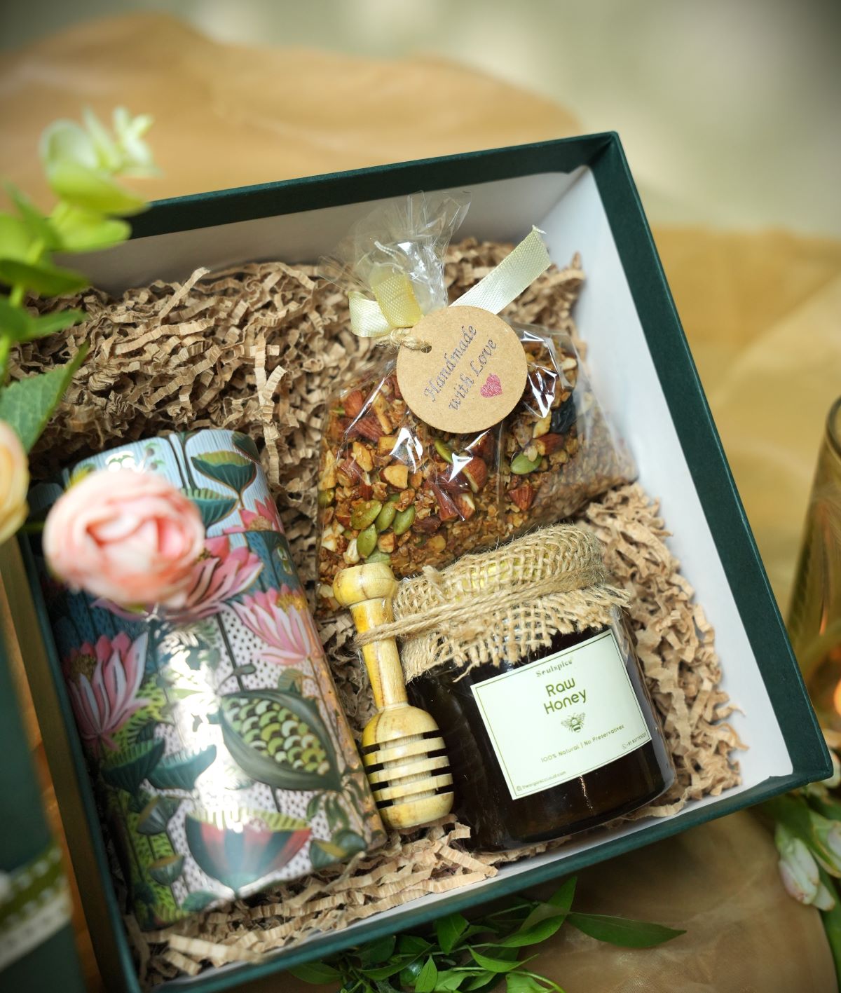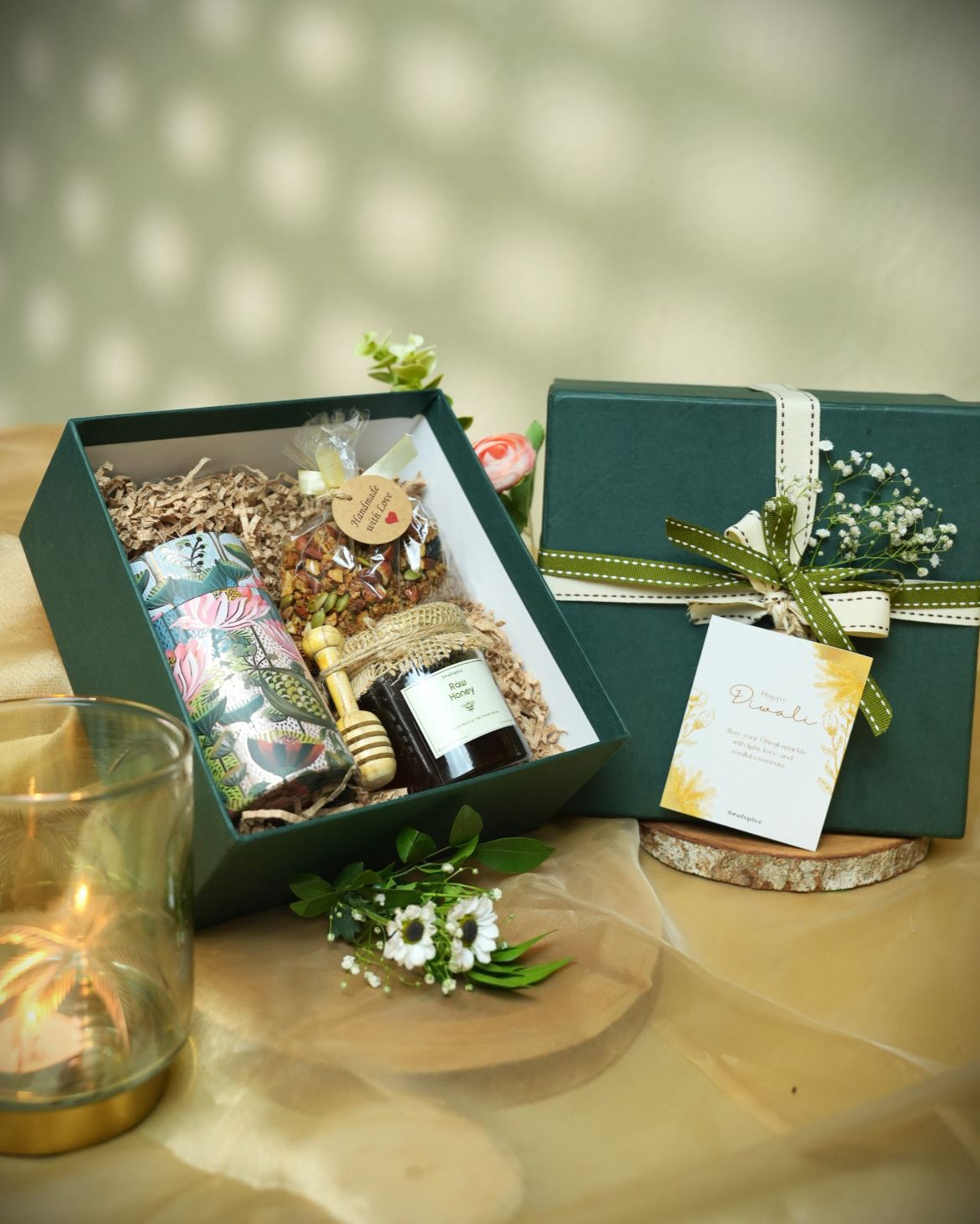 The OG Soul Box is a thoughtful corporate gift combining warmth and tradition. It features delicious cookies and pure raw honey, with a choice of either a glowing diya or a wholesome trail mix. Perfect for sharing appreciation and spreading joy in the workplace with a touch of authentic soul.